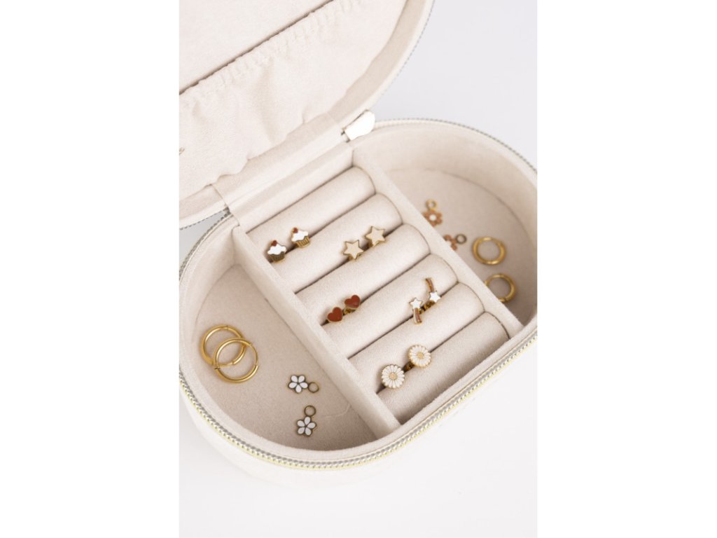 Šperkovnica Aura bola vytvorená s dôrazom na jemnosť, funkčný dizajn a kvalitné spracovanie. Jej mäkký vnútorný priestor s priehradkami udrží poriadok v detských šperkoch aj doplnkoch a zároveň chráni malé poklady pred stratou či poškodením.