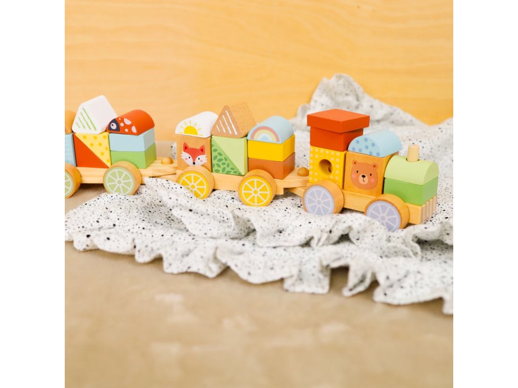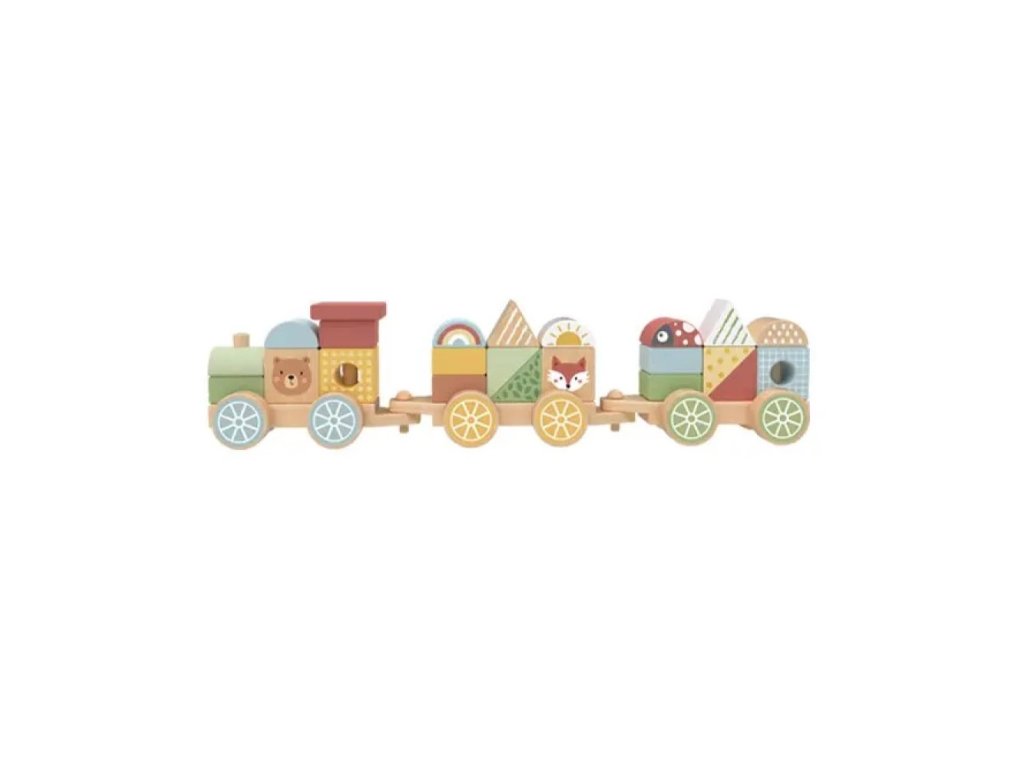 🚂 Vláčik, stavebnica a skladačka v jednom! Tento drevený vláčik Lesné zvieratká od Tooky Toy je skvelou hračkou pre malých objaviteľov. Obsahuje drevenú lokomotívu a dva vagóny, na ktoré môžu deti nasadzovať rôzne farebné dieliky a roztomilé zvieratká.