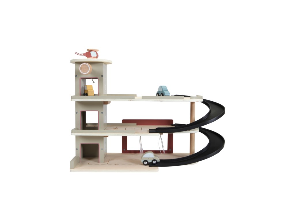 S touto detailne prepracovanou drevenou garážou budú mať deti nekonečné možnosti hry. Môžu parkovať, tankovať, opravovať autá alebo pristávať vrtuľníkom na heliporte. Tento prémiový drevený doplnok je kompatibilný s vláčikovou dráhou Little Dutch XL, čo umožňuje ešte väčšie kombinácie a hodiny zábavy!