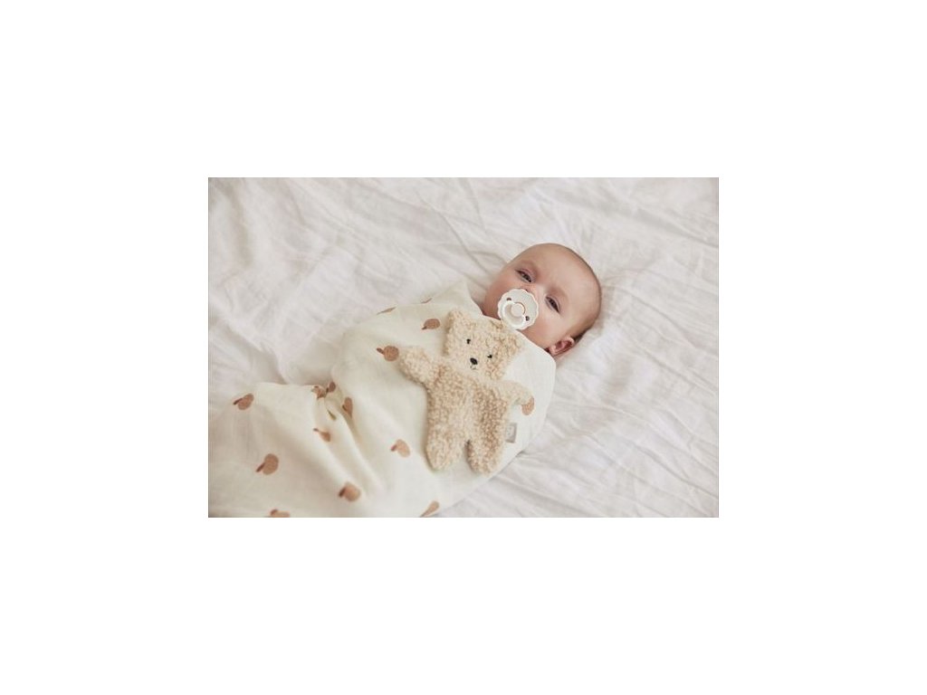 Už žiadne nekonečné hľadanie cumlíka v ohrádke, postieľke či kočíku. Už žiadne starosti v noci, ked Vášmu bábätku vypadne z pusinky cumlík a neviete ho nájsť :) Handrička na cumlík je vyrobená z ultra mäkkej látky, takže sa s ňou bude môcť vaše dieťatko maznať. Táto rozkošná kačička bude robiť spoločnosť vášmu bábätku nielen počas zaspávania. K mojkáčikovi môžete zladiť ďalšie produkty s motívom medvedíka ako je plachta, deka či plienky.