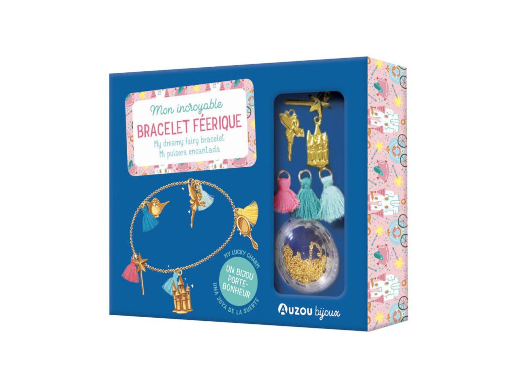 Kúzelný retiazkový náramok s talizmanmi v darčekovom balení. Sada pozostáva z retiazky, 3 talizmanov na prívesku (zámok, víla, kúzelná palička) a 3 farebných pompomov. Nevyhnutná výbava pre každú milovníčku čarovného sveta víl. DIY sady na tvorbu bižutérie podporujú kreativitu, formujú koordináciu oko-ruka, zlepšujú manuálnu zručnosť, stimulujú predstavivosť a učia sústredeniu. Odporúčaný vek: 6+