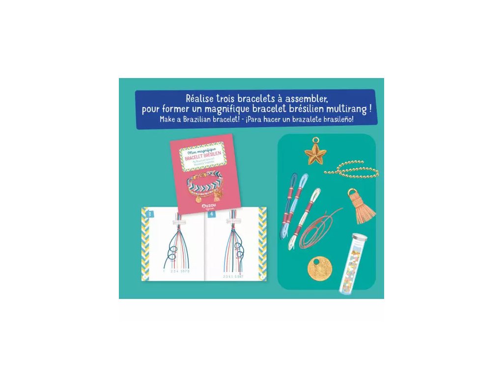 Sada na výrobu šperkov v peknom darčekovom balení. Brazílsky náramok má tri časti. Sada obsahuje korálky, prívesky, nitky na pletenie, guľôčkovú retiazku so zapínaním. DIY sady na tvorbu bižutérie podporujú kreativitu, formujú koordináciu oko-ruka, zlepšujú manuálnu zručnosť, stimulujú predstavivosť a učia sústredeniu. Odporúčaný vek: 7+