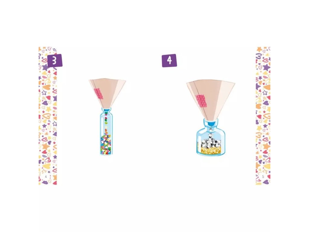 Sada obsahuje 3 fľaštičky na naplnenie podľa vlastnej fantázie, trblietky a ozdoby. DIY sady na tvorbu bižutérie podporujú kreativitu, formujú koordináciu oko-ruka, zlepšujú manuálnu zručnosť, stimulujú predstavivosť a učia sústredeniu.