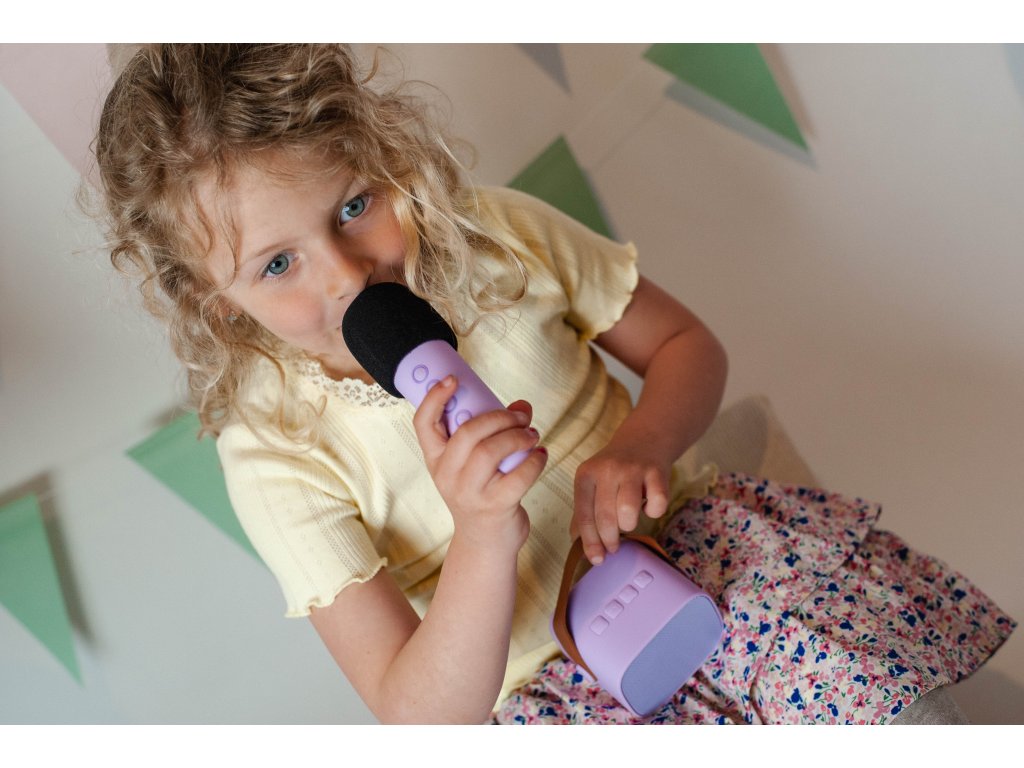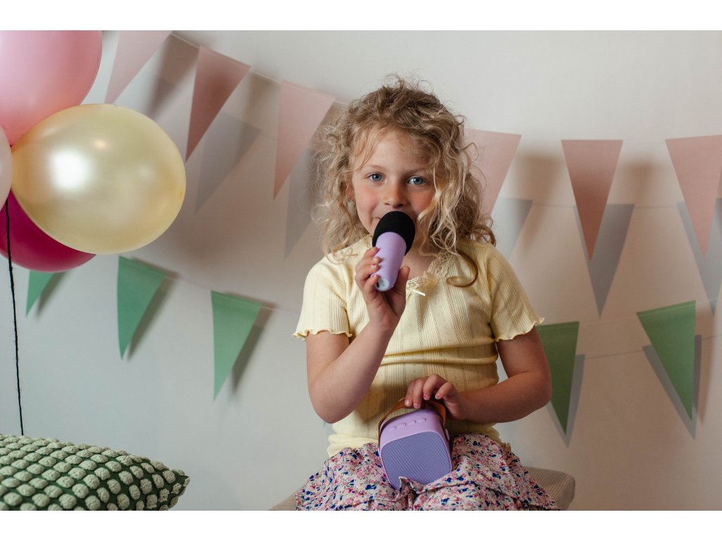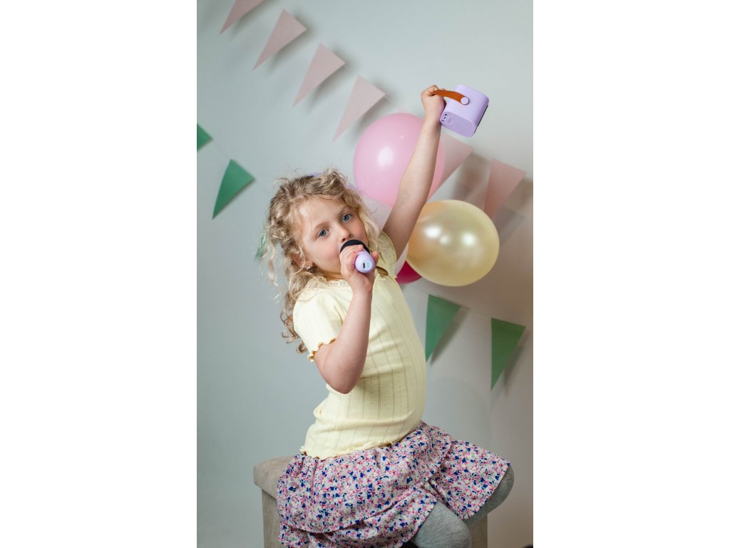 Tento prenosný karaoke set v štýlovej fialovej farbe umožňuje jednoduché prepojenie cez Bluetooth so smartfónom alebo tabletom, takže môžete spustiť obľúbené pesničky kdekoľvek. Set obsahuje mikrofón a reproduktor, vďaka čomu sa deti môžu zabávať spievaním na záhrade, v parku alebo na dovolenke.